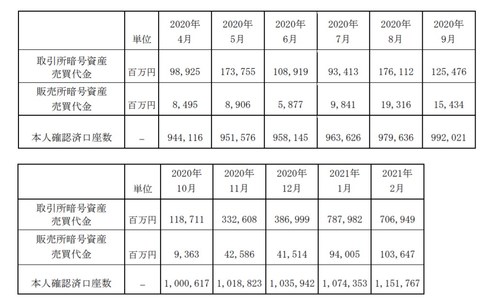 コインチェックは10日、暗号資産取引所の月次情報を初めて開示。コインチェックが相対となる販売所売買代金は2月、1036億4700万円だった。昨年4月の約85億円から10倍以上に増加した。販売所売買には手数料が課され、コインチェックの収益源になる。