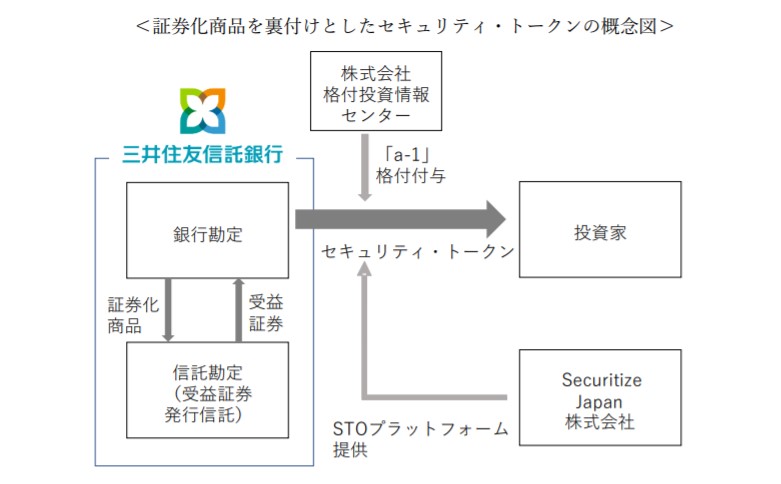 三井住友信託は29日、証券化商品を裏付けとする受益証券をデジタル証券(セキュリティトークン=ST)に転換し、米フィンテックのセキュリタイズ(Securitize)が開発したデジタル資産の発行プラットフォーム上で試験的に発行したと発表した。今回の取り組みで発行されたセキュリティトークンには、格付け投資情報センターが「a-1」の格付を付与した。