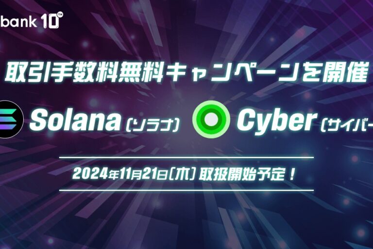 両通貨は「暗号資産を貸して増やす」サービスにも対応し、最大年率5%での1年間の貸付が可能。さらに、取扱開始から12月20日までの期間限定で、SOL/JPYとCYBER/JPYの取引手数料を無料とするキャンペーンを実施する。