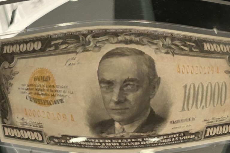 |画像:10万ドル札(BrayLockBoy/Wikimedia Commons, modified by CoinDesk)