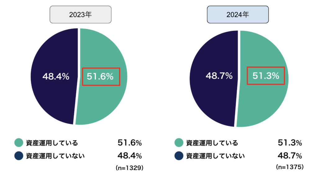 「資産運用をしていますか?」という質問に対し、「資産運用している」との回答は51.3%となった。これは2023年とほぼ横ばい。