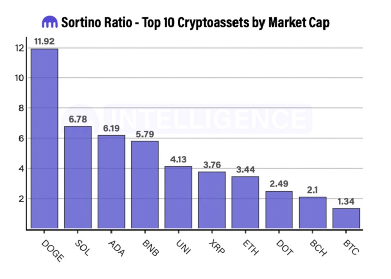 ソルティノ・レシオでもビットコインが最下位に沈んでいることが分かる。