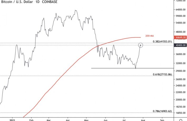 「BTCは6月上旬のように200日移動平均線に再び拒否されたが、ひと息ついた後に再びトライし、できれば3万5000ドルを割らないことを望んでいる」(チュー氏)