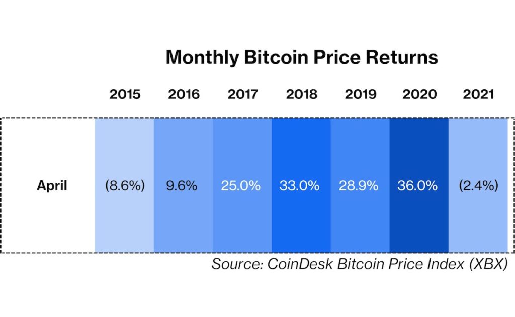 最後に、過去を振り返ると、ビットコインは4月に良好なパフォーマンスを示し、平均上昇率は約17%となっている。もしかすると、残り期間で弱気相場を回復できるのかもしれない。もちろん、過去の出来事は未来を表すものではない。