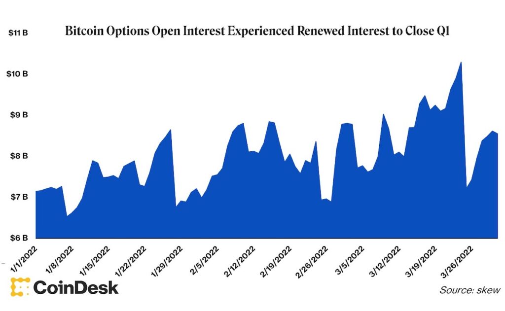 ビットコイン価格がようやく上昇傾向となるなか、ビットコインオプション市場では3月24日、建玉が年初からの最高水準の98億ドルとなった。この日、30億ドル以上が期日を迎えたが、その後、13億ドル以上が加わり、比較的早い回復を示した。
