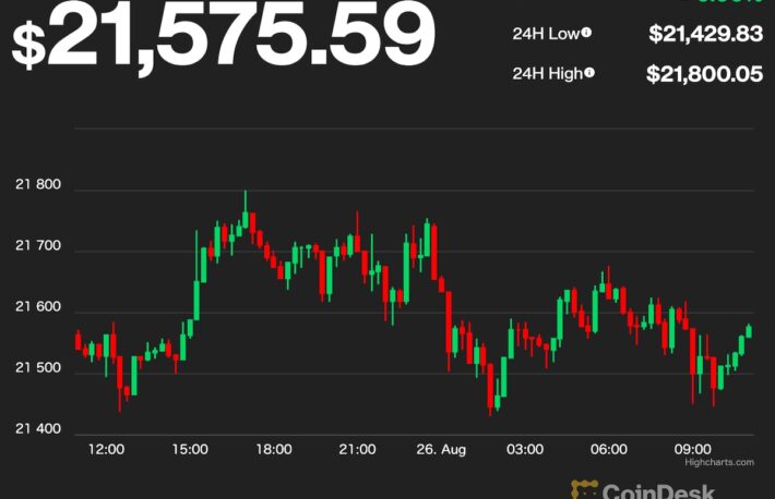 ビットコイン(BTC)は25日、パウエルFRB(米連邦準備理事会)議長の講演を翌日に控えるなか、ほぼ横ばいとなり、2万1500ドル付近で推移した。26日には何らかの値動きが見られるだろう。