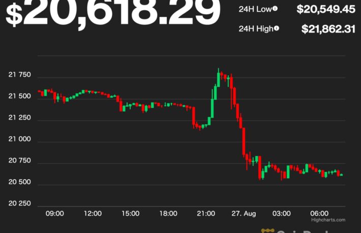 |原文:Bitcoin Tumbles Below $21K After Powell’s Hawkish Remarks