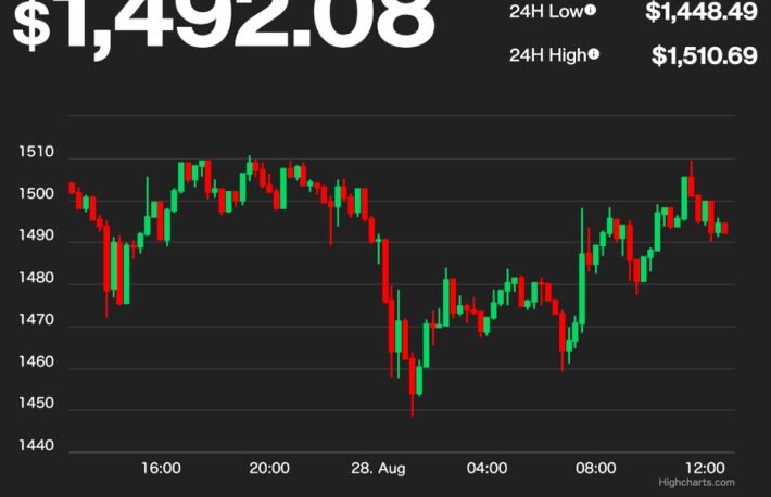 26日、パウエルFRB(米連邦準備理事会)議長のタカ派発言を受けて、暗号資産と株式市場は下落。日本時間28日13時点、ビットコインは2万ドル前後をめぐる展開、イーサリアムは1500ドルを割る展開となっている。
