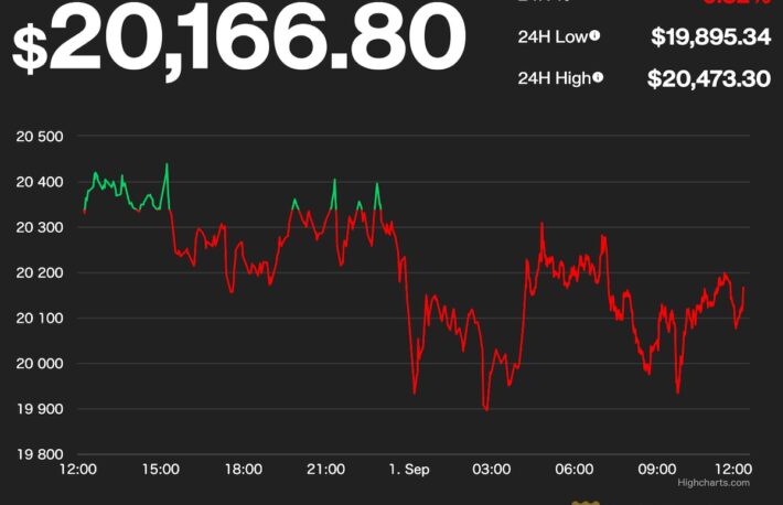 ビットコイン(BTC)は31日、約2%上昇し、2万ドルを超える水準で推移した。29日からの下落の一部を回復したが、50日指数平滑移動平均線(EMA)を11%下回っている。