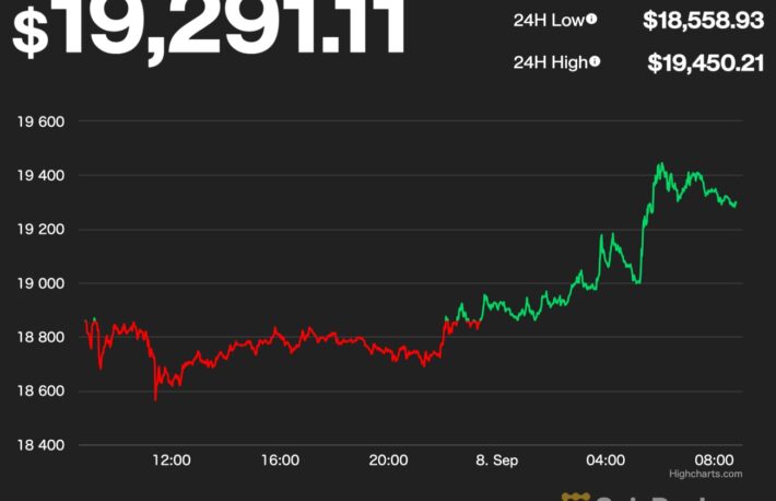 アメリカの取引時間とともにビットコインは1.8%上昇、当記事執筆時点では1万9000ドルを下回っており、年初から59%下落している。取引高は20日移動平均を下回り、投資家の確信の弱さを示している(日本時間8日9時前には、1万9300ドル付近、24時間で2%超上昇)。