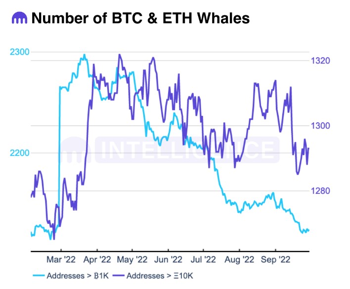 クジラが保有するETHは月初8,120万ETHだったが、Merge完了の前日である9月14日に一時的に8,090万ETHまで減少、Mergeの無事完了を見届けた後にリバウンドし、8,150万ETHで月を終えた。