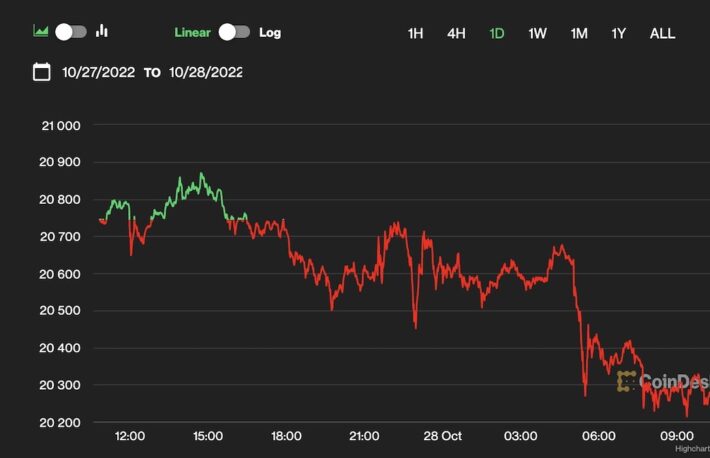 ビットコイン(BTC)は27日に下落したが、引き続き2万ドルを問題なく上回っている。米商務省が発表した第3四半期のGDP(国内総生産)は2.6%増、エコノミスト予想は2.4%増だった。FRB(米連邦準備制度理事会)は、急激な景気後退を招くことなく、インフレを抑制しようとしている。GDPが2四半期連続のマイナスからプラスに転じたことは、FRBのタカ派姿勢がまだ十分な影響を及ぼしていないことを示している。