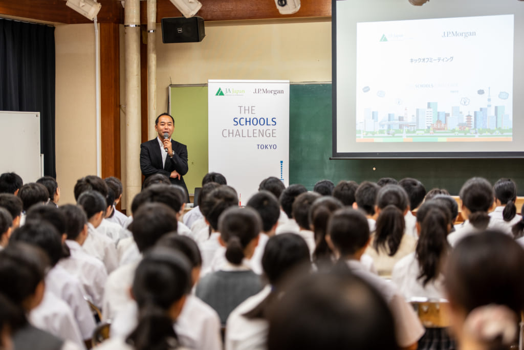 JPモルガンはSTEMをコアに置いたこの活動を、ロンドン、パリ、ミラノ、香港、フランクフルト、シンガポール、サンパウロで展開した後、2019年夏、東京でローンチした。日本のスクール・チャレンジでは、災害大国で高齢化社会の独自の課題を軸に置き、文豪・芥川龍之介も通ったという都立両国高等学校附属中学校の120名の生徒が、約6カ月にわたるこのプログラムに参加する。