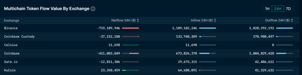 Nansen.aiのデータによると、バイナンスからの全プロトコルでの流出は、24時間で7億1900万ドル(約1002億6000万円)に達した。