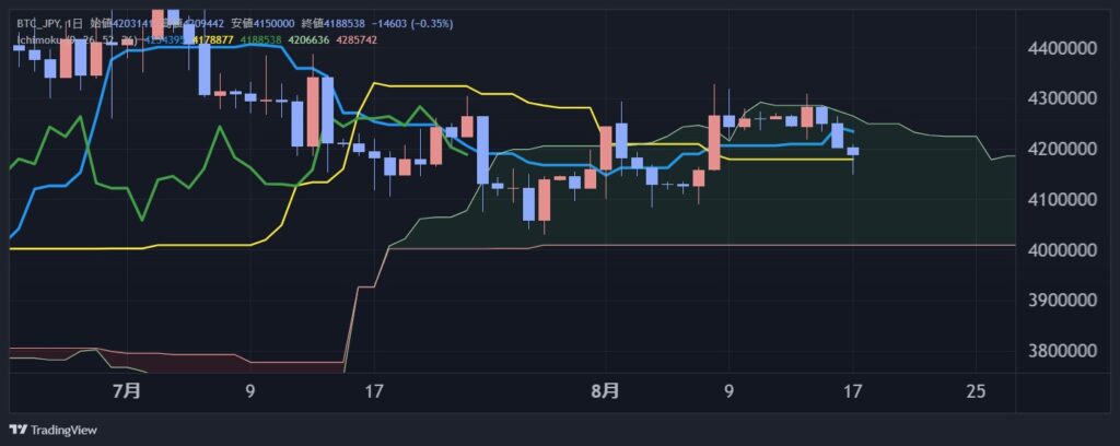 雲の上に出れば三役好転の買いサインが点灯するところだったが、結局、雲の上限に上値を押さえられた格好。