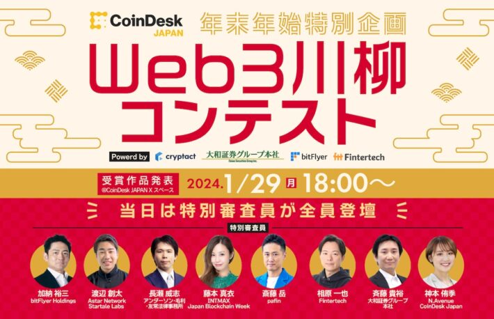 CoinDesk JAPAN年末年始特別企画「Web3川柳コンテスト」の受賞作品発表を1月29日18時〜19時、Xスペースにて実施します。