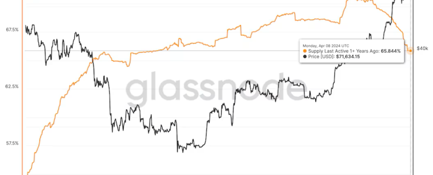 ビットコイン、1年以上動いていない供給量の割合が2022年10月以来最低に