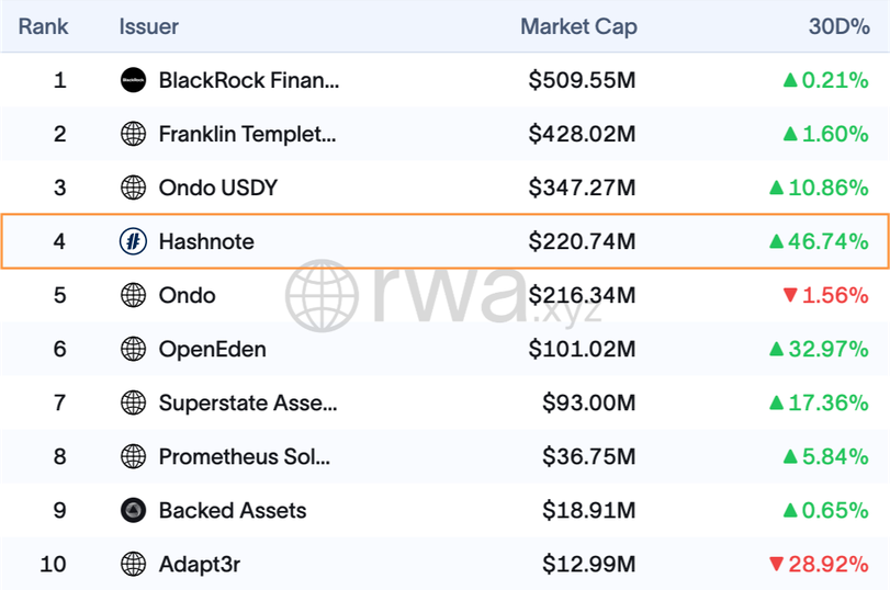 RWA.xyz |(発行者別)トークン化された国債、国債商品指標、国債時価総額