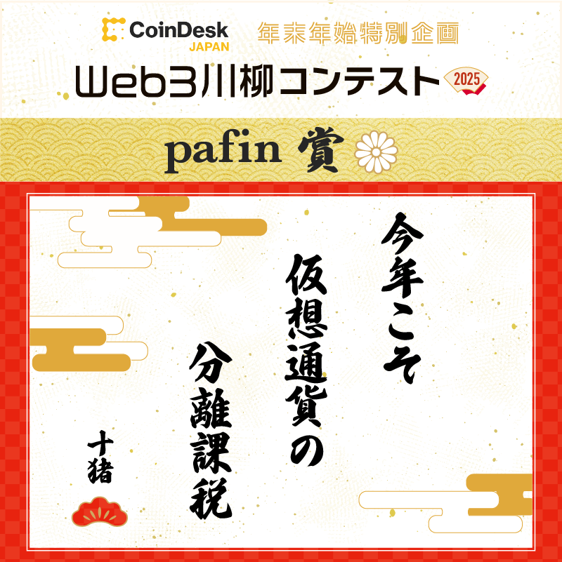 CoinDesk JAPANが年末年始特別企画として開催した「Web3川柳コンテスト2025」の受賞作品が決定しました! 1月17日にXスペースで行われた発表イベントでは、最優秀賞をはじめ、4つの協賛社賞や優秀賞が発表されました。