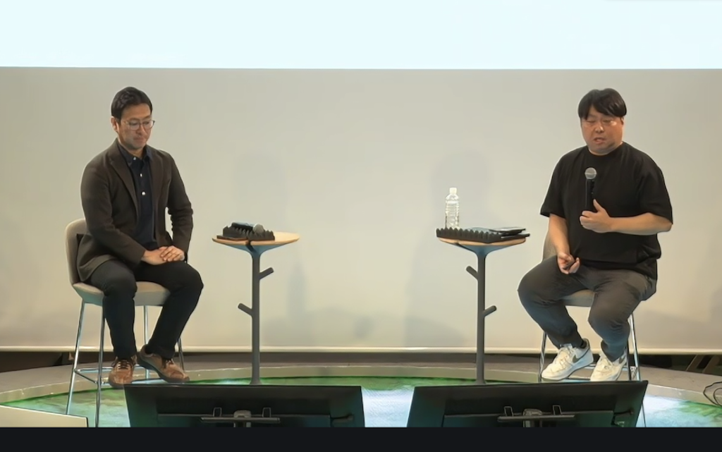 マリノバ博士のセッションの前には、「DeSci革命:グローバルトレンドを追う」と題して、デロイト トーマツ コンサルティング Emerging Tech担当 執行役員の寺園知広氏と、「新しい経済」編集長の設楽悠介氏が登壇した。
