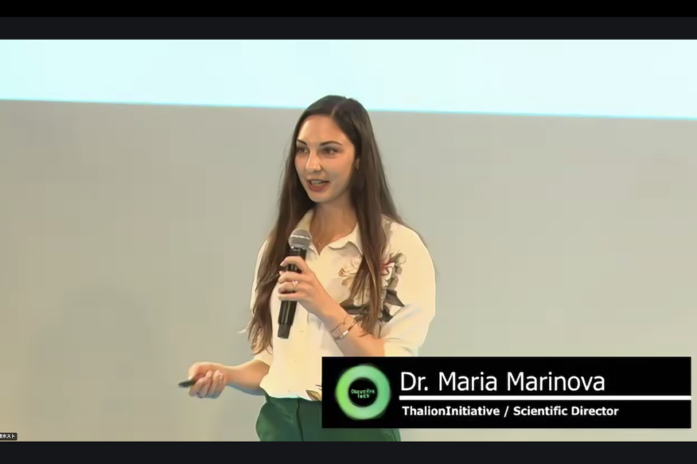 午前中に行われたセッション「DeSci Unveiled: A Pioneer’s Journey Through Challenges and Triumphs.(DeSciの夜明け:挑戦と勝利の軌跡)」には、老化・長寿研究の分野で博士号を持ち、VitaDAO、AthenaDaoのコアメンバーとして、DeSciの最前線を切り開くマリア・マリノバ博士(Dr. Maria Marinova)が登壇。自身の経歴と、DeSciの起源、現在の取り組みを紹介した。