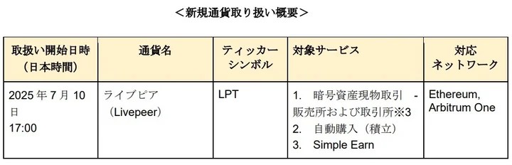 暗号資産(仮想通貨)取引所バイナンス(Binance)の日本法人バイナンスジャパン(Binance Japan)は、7月10日からライブピア(LPT)の取り扱いを開始すると発表した。日本円建て取引ペアLPT/JPYも提供される。これにより、同社が取り扱う暗号資産は計61銘柄となる。