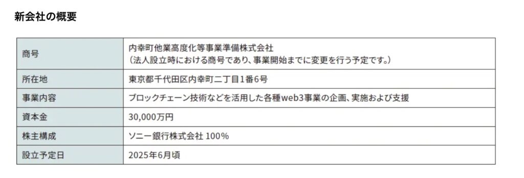 ソニー銀行がweb3関連事業を営む100%子会社の設立を発表した。