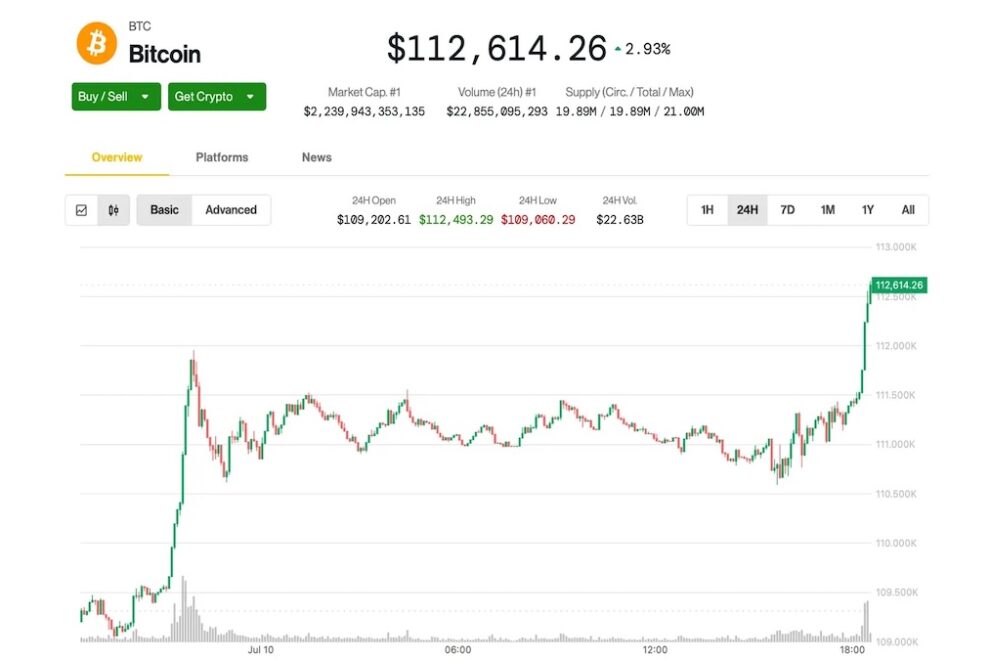 |原文:Bitcoin Breaks Fresh Record of $112,700