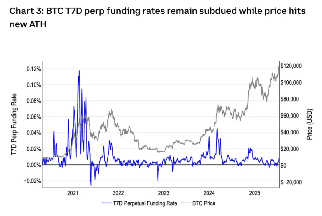 デリバティブ市場は過剰なフロス(泡)を示しておらず、グローバルな流動性の状況がリスク資産とETFを支え、暗号資産財務戦略企業は継続的な需要を示しているとアナリストらは主張し、ビットコインにはさらに上昇する余地があると予測している。