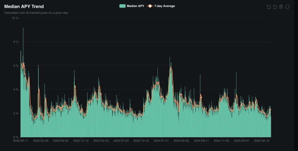 - ステーキング以外にも、投資家はリステーキングやEulerとSpark間のルーピングといった高度な戦略を活用し、比較的低いリスクでステーブルコインに対して最大25%の利回りを獲得している。