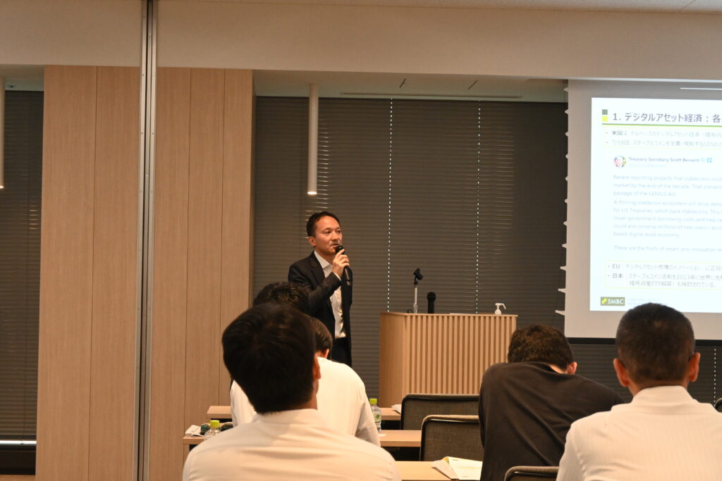 三井住友フィナンシャルグループ(三井住友FG)および傘下の資産運用会社、三井住友DSアセットマネジメントは8月1日、都内で「ブロックチェーンと金融イノベーション:デジタルアセットの次世代商品戦略」と題したグループ勉強会を開催した。三井住友銀行、SMBC日興証券、SMBC信託銀行など各社の職員らが参加し、トークン化資産や暗号資産(仮想通貨)を活用した次世代商品戦略について事例や知見を共有した。