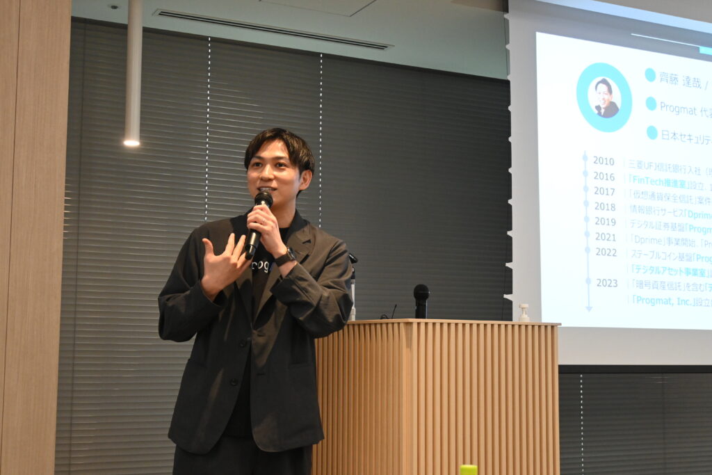 セキュリティ・トークン(ST)やステーブルコイン(SC)の発行・管理基盤を手がけるプログマ(Progmat)の代表取締役 Founder and CEO、齊藤達哉氏は「金融×デジタルアセット融合の最前線」をテーマに国内市場や世界の潮流について解説した。