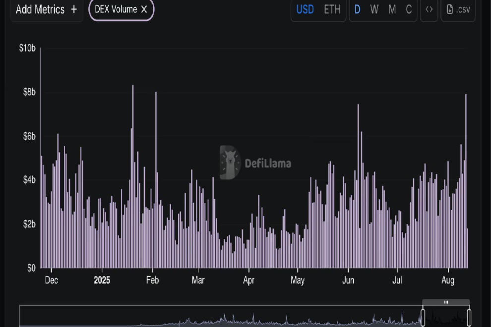 |原文:Institutional Frenzy Pushes Ethereum DEX Volumes Above Solana