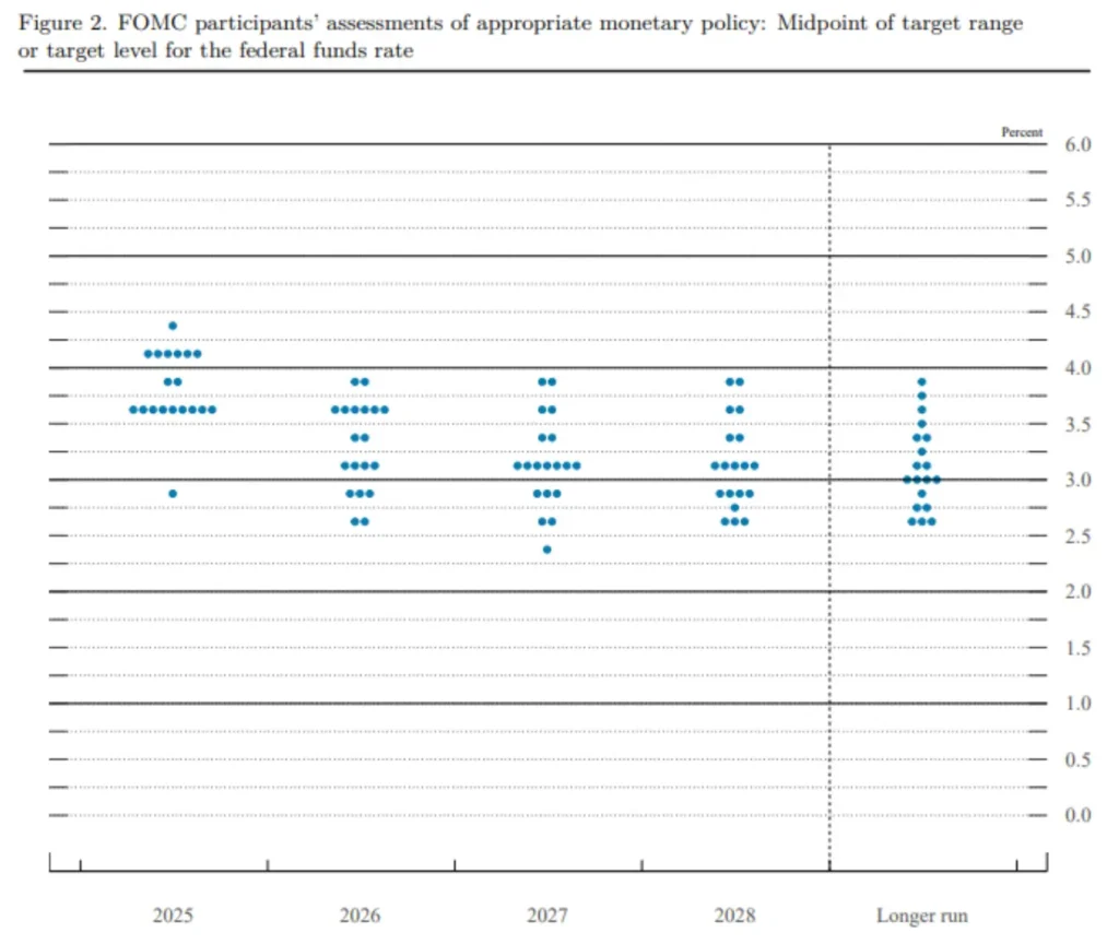 ドットチャートを見ると、米連邦公開市場委員会(FOMC)参加者の間で今年の残りがどのように展開するかについて意見が分かれていることが示されている。参加者のわずかな過半数が、今年さらに2回の利下げがある可能性があると考えている。