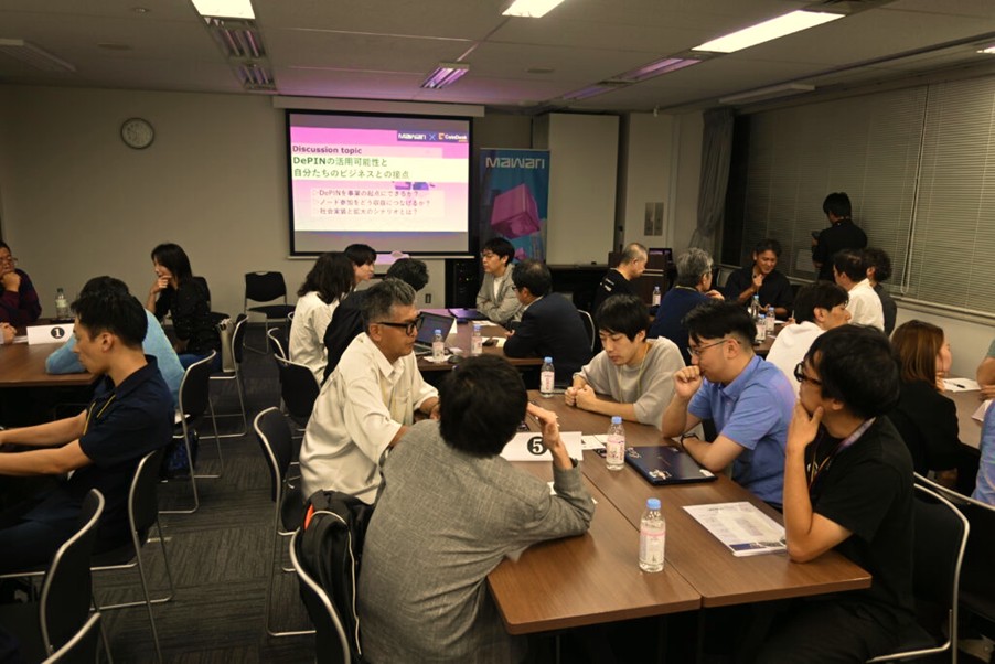 9月19日、MawariはCoinDesk JAPAN/N.Avenueと共催でワークショップを開催した。都内の会場には通信企業やWeb3事業者の担当者など50人が集まり、DePINの基礎知識からノードの仕組み、自社ビジネスに活用できる可能性まで意見を交わした。