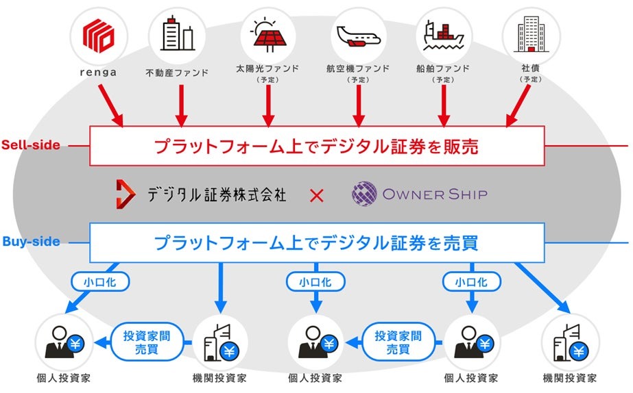 同社は、ブロックチェーン技術を活用し、不動産やインフラなどの実物資産を裏付けとする金融商品をデジタル証券として発行するプラットフォーム「renga」を開発している。