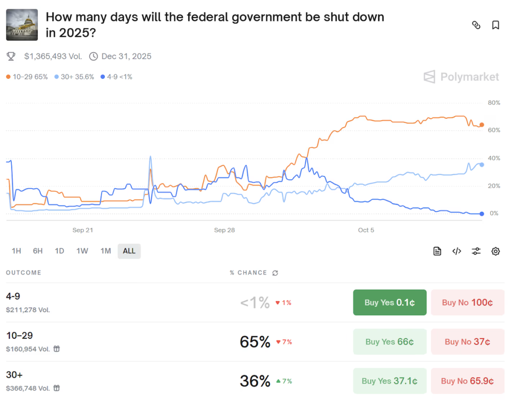 [連邦政府の閉鎖は何日続くか。:Polymarket]
