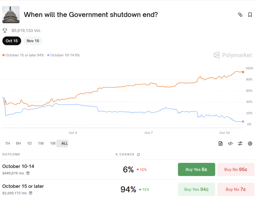 [連邦政府閉鎖はいつまで続くか。:Polymarket]