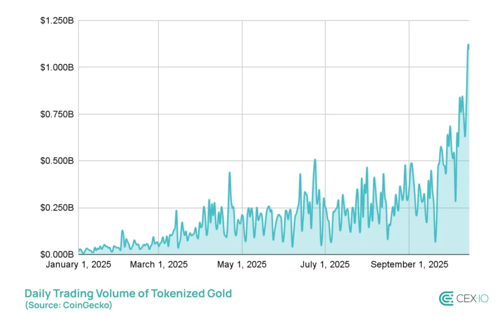 暗号資産(仮想通貨)取引所CEX.IOの新しいレポートによると、10月1日の米政府閉鎖以来、トークン化された金製品の取引高は100億ドルを超え、世界第2位の金ETFであるブラックロック(BlackRock)のiシェアーズ・ゴールド・トラスト(iShares Gold Trust:IAU)を上回った。