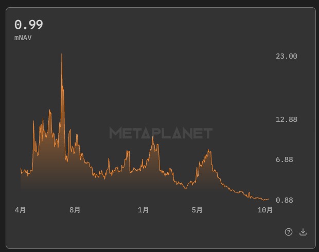 10月14日には、企業価値を保有BTCの時価総額で割った指標「mNAV」が、2024年のBTC財務戦略開始以来、初めて1倍を割り込み、時価総額が保有BTCの価値を下回る状態に陥っていた。