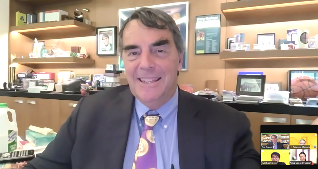 |トップ画像:シリコンバレーからオンライン取材を受けたティム・ドレイパー氏