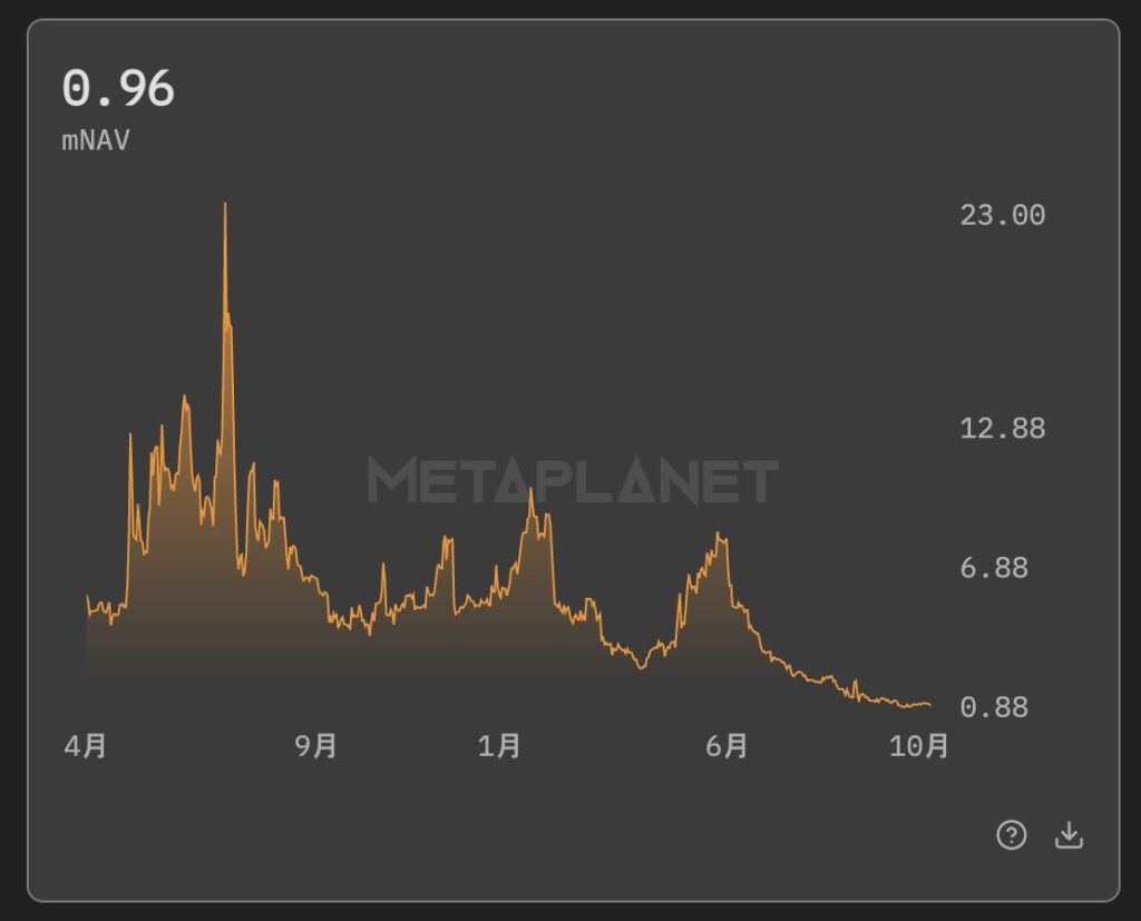 同社では、企業価値を保有BTCの時価総額で割った指標「mNAV」が、2024年のビットコイン・トレジャリー事業開始以来、初めて1倍を割り込み、時価総額が保有BTCの価値を下回る事態に陥っている。