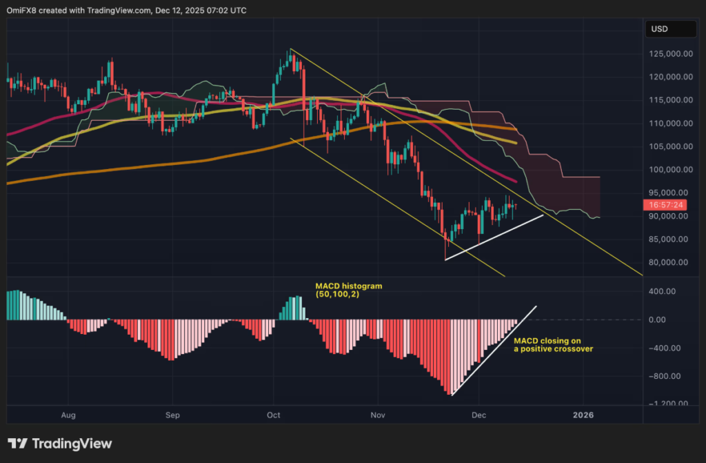 ナスダック(Nasdaq)は11月の下落後、持ち直し、現在では広く追跡されている50日、100日、200日単純移動平均線(SMA)を上回って推移しており、暗号資産(仮想通貨)市場に強気のシグナルを送っている。また、アメリカ上院の暗号資産市場構造に関する強気な見方が行き詰まっているとの報道にもかかわらず、BTC価格は横ばいを維持しており、BTCの売り手は勢いを失っているように見える。