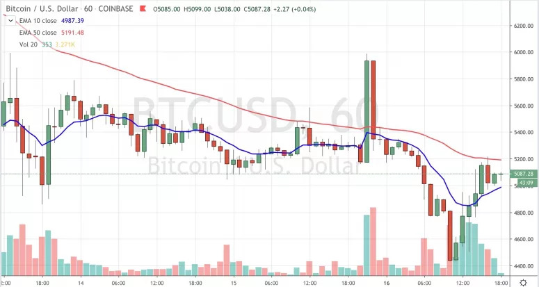 FRBのニュースに先立つ3月14日の週末の大部分を4,600ドルから5,900ドルの間で推移した後、トレーダーはビットコインの購入するポイントとして再び5,000ドルのエリアを探っている。