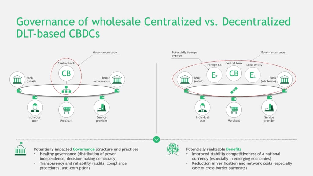 初期のCBDCプロジェクトは、ピアツーピア決済を可能にすることで、現行の金融システムよりも優れた代替システムを漸進的に作り出すが、ガバナンスは中央集権型のままで、流通も管理された状態を維持している。