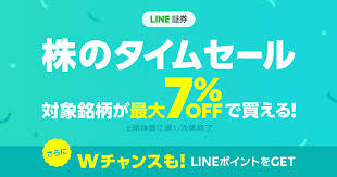 もう一つ株式を安く買う方法は、LINE証券(ライン証券)の「株のタイムセール」を利用することだ。これは文字通り、株式が一定のセール時間内なら安く買えるサービスで、最大7%オフになる。いつも行われているわけではないが、実施される際は3%、5%または7%オフの割引価格で買える。
