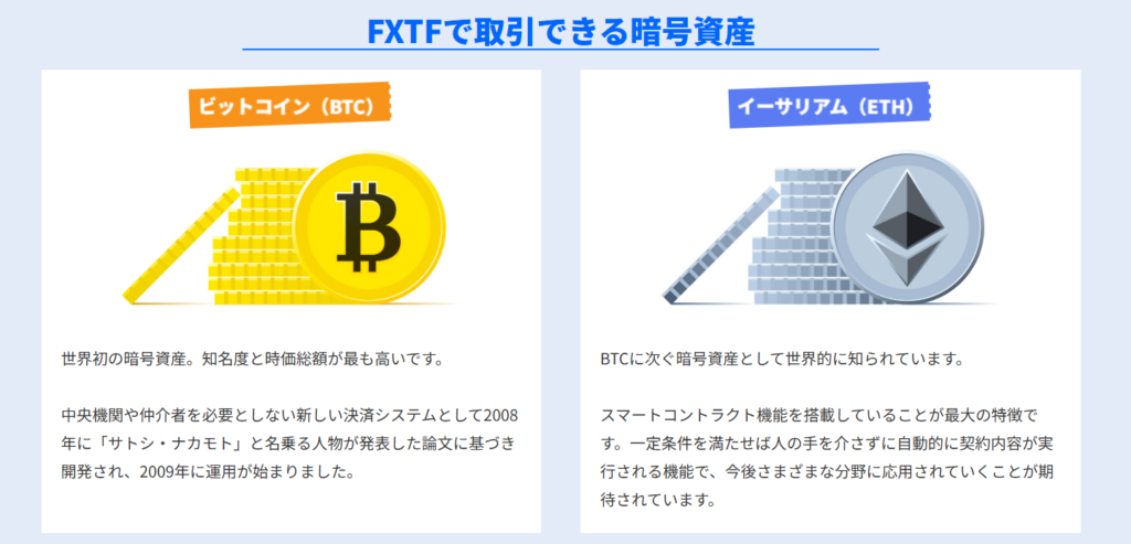 FXTF 暗号資産CFDの取扱通貨